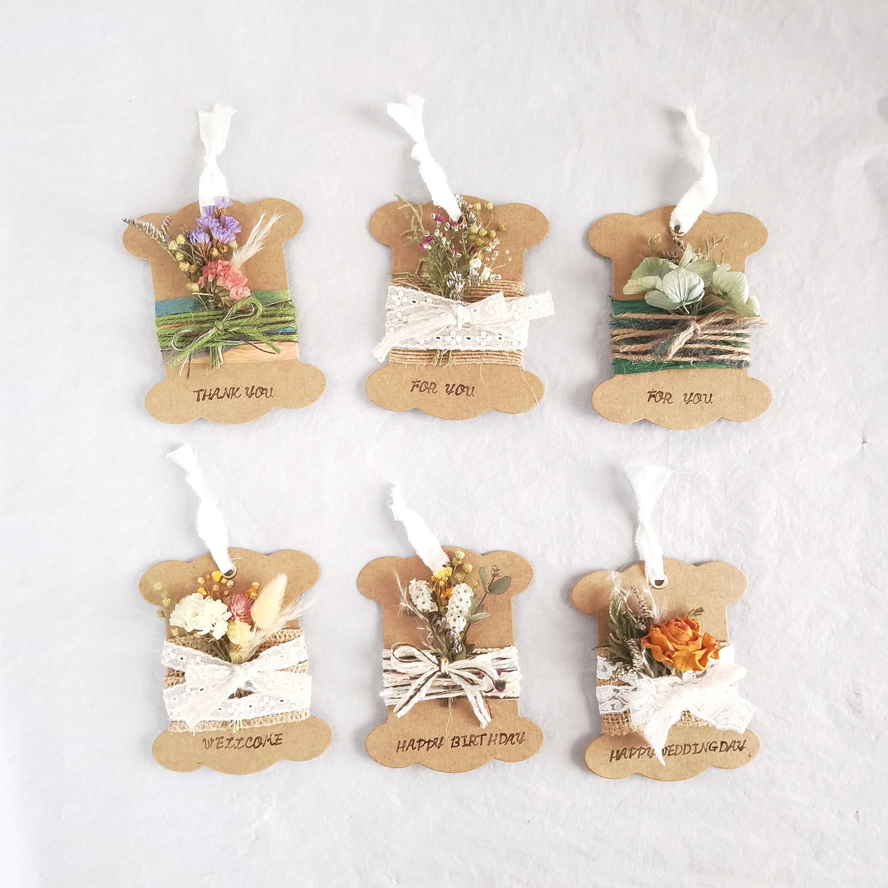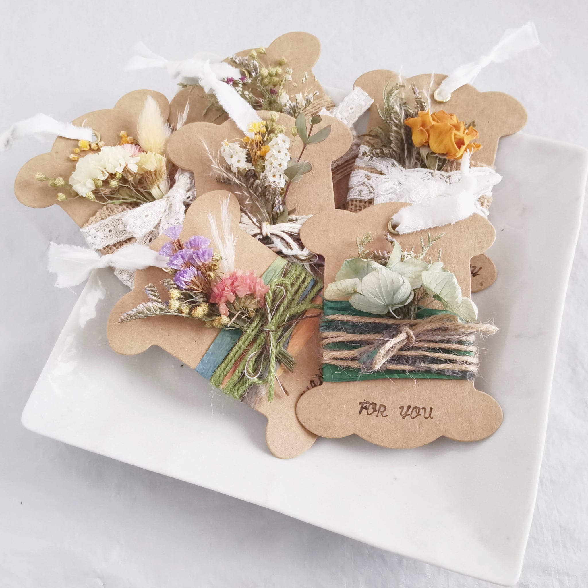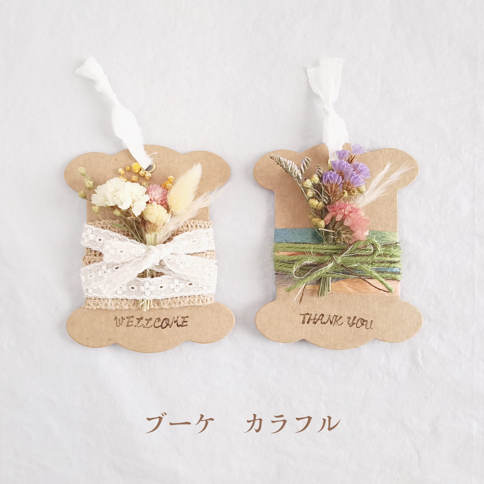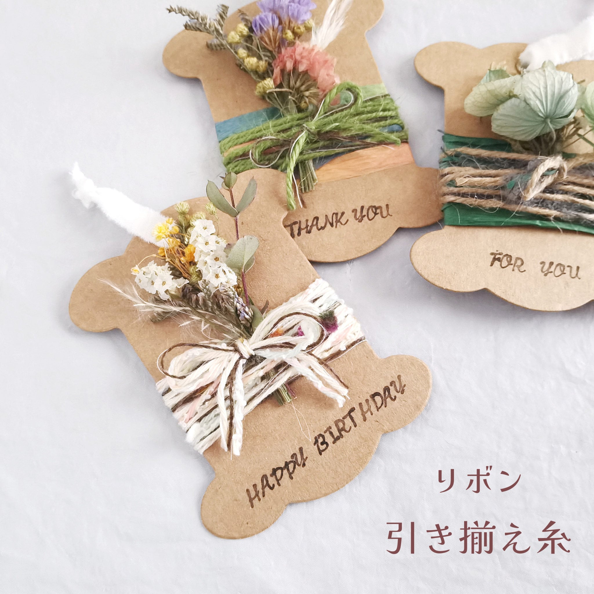 メッセージカード15枚セット 糸巻き土台×ドライフラワーブーケ
