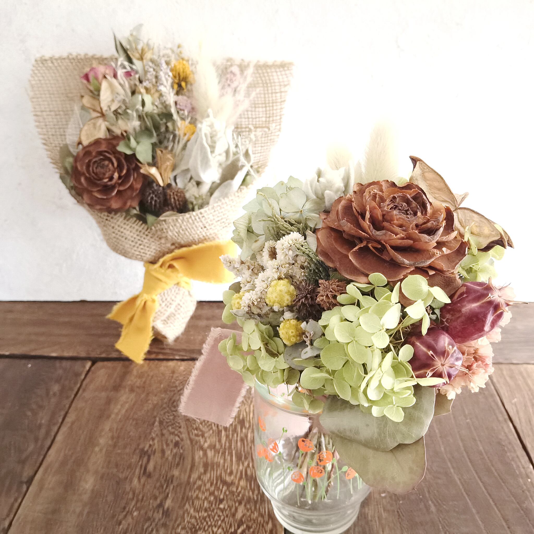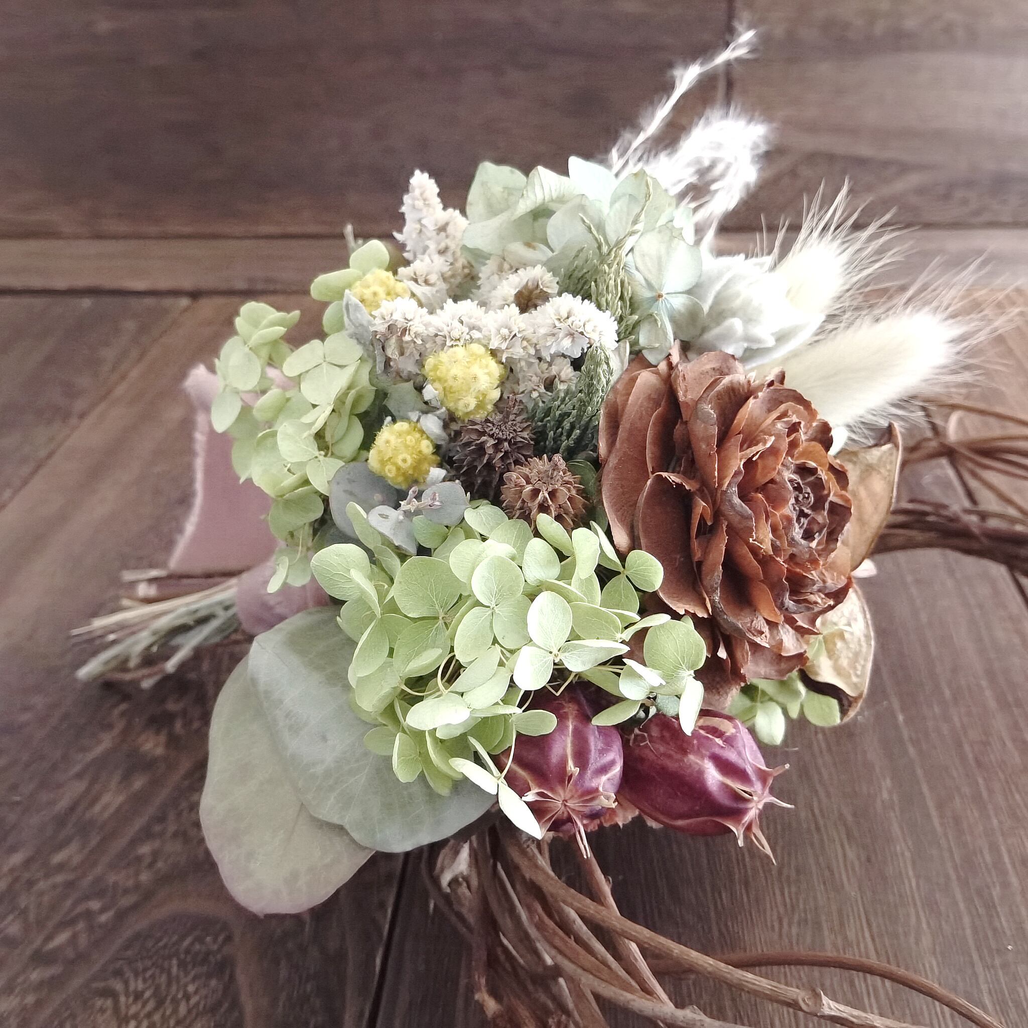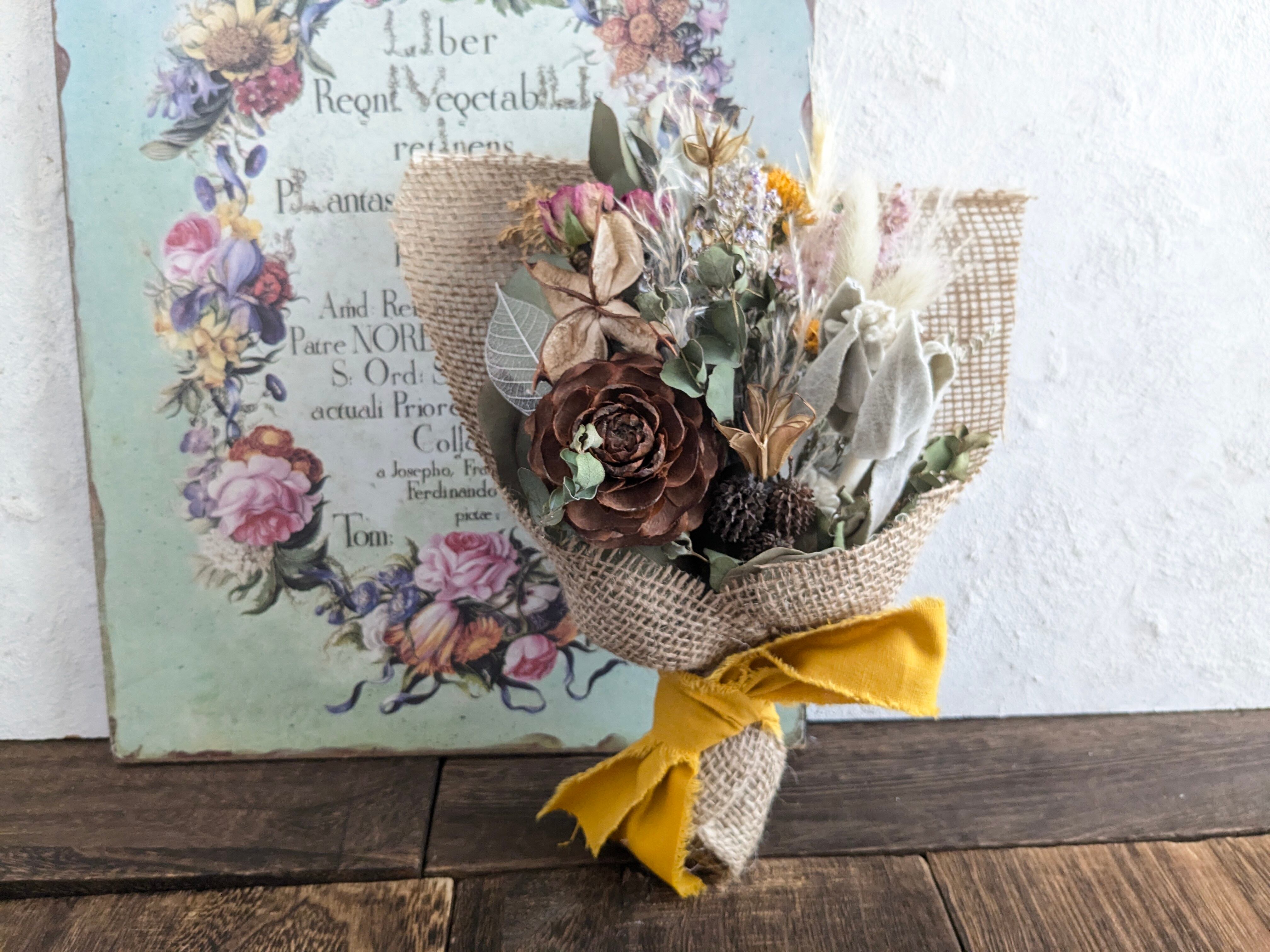 【送料込み*セミオーダー】木の実とお好きなお花で束ねるドライフラワーブーケ【定形外郵便日付指定OK】
