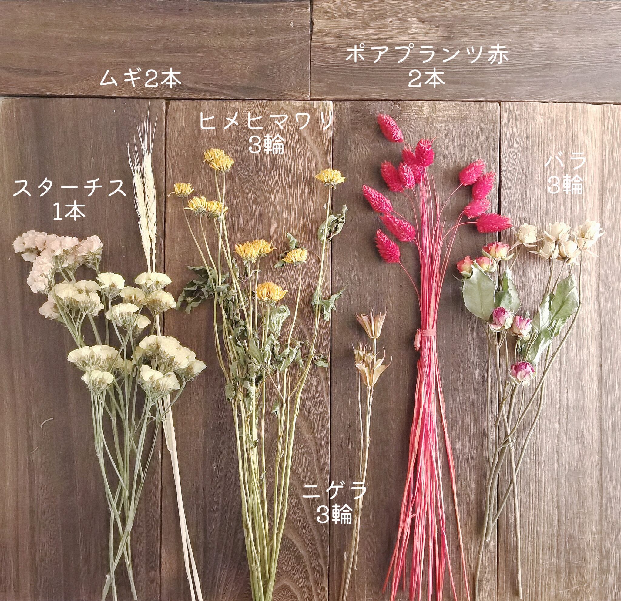 高さ14cm✕直径10cm 穂もの2種 大きめの花1種 小花2種
