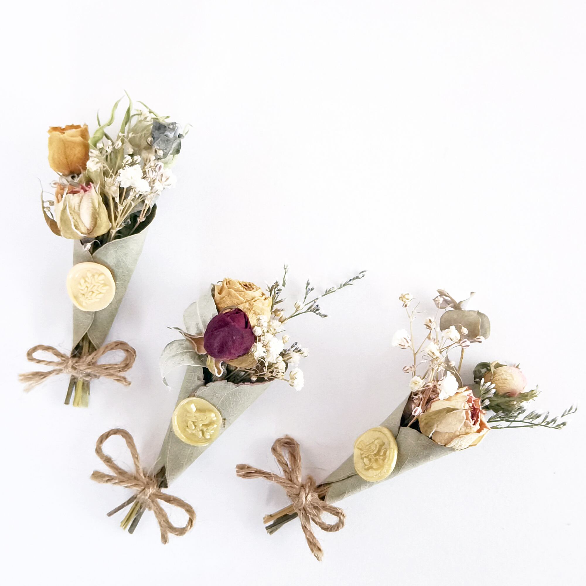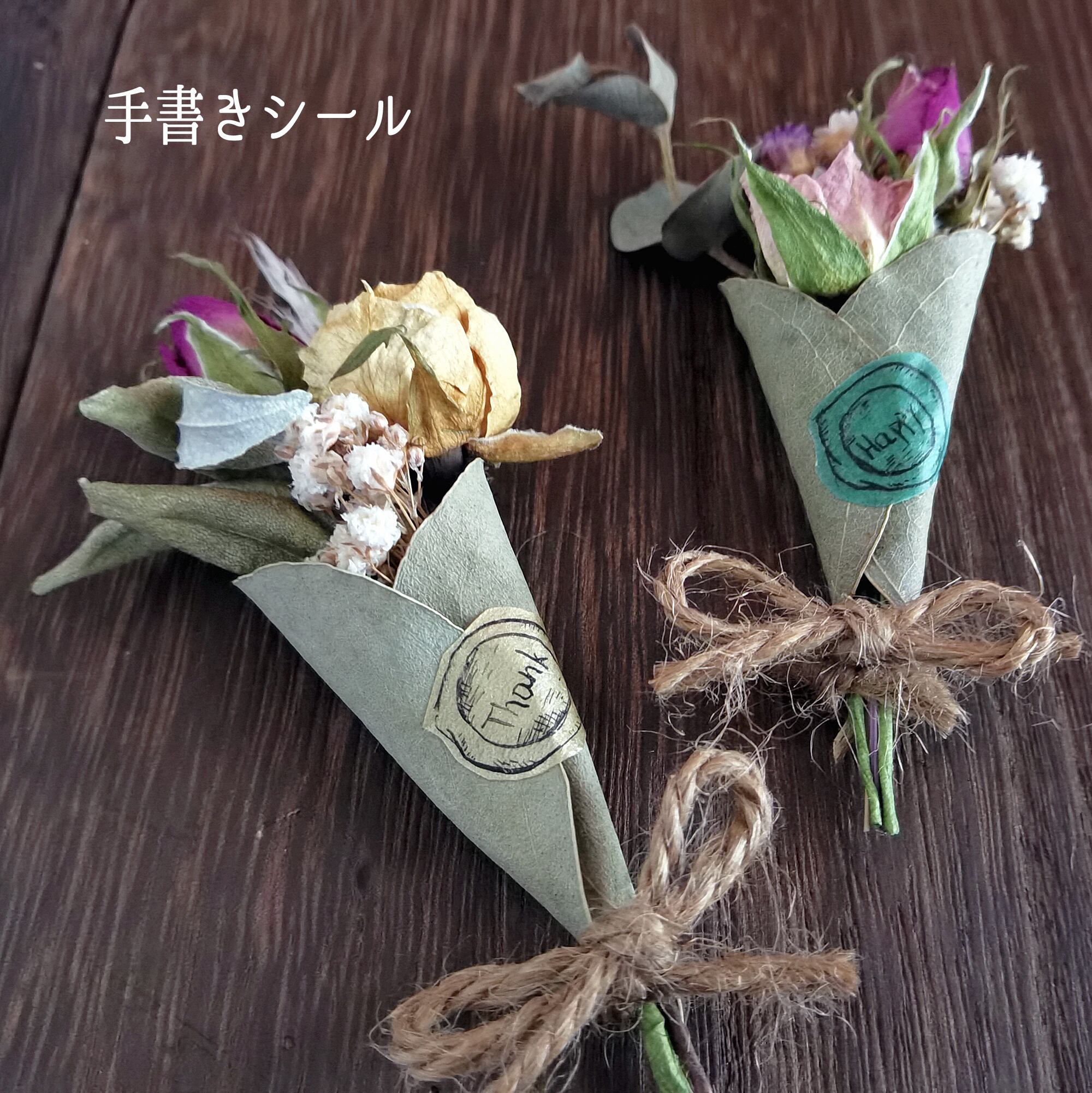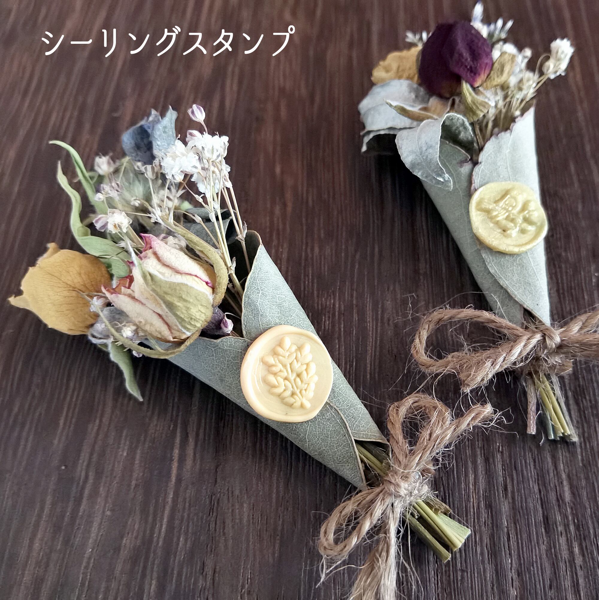 ポイントには、ドライフラワーと相性抜群のシーリングスタンプを付けています。