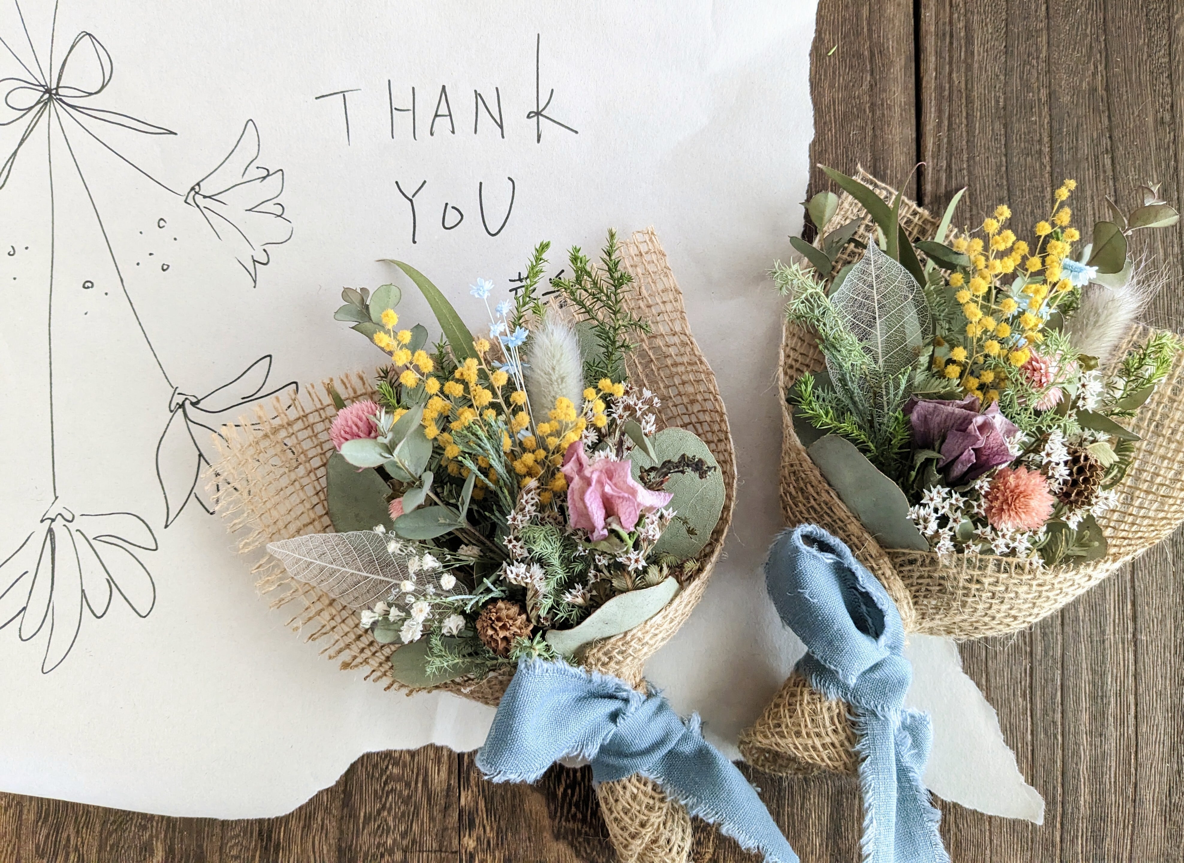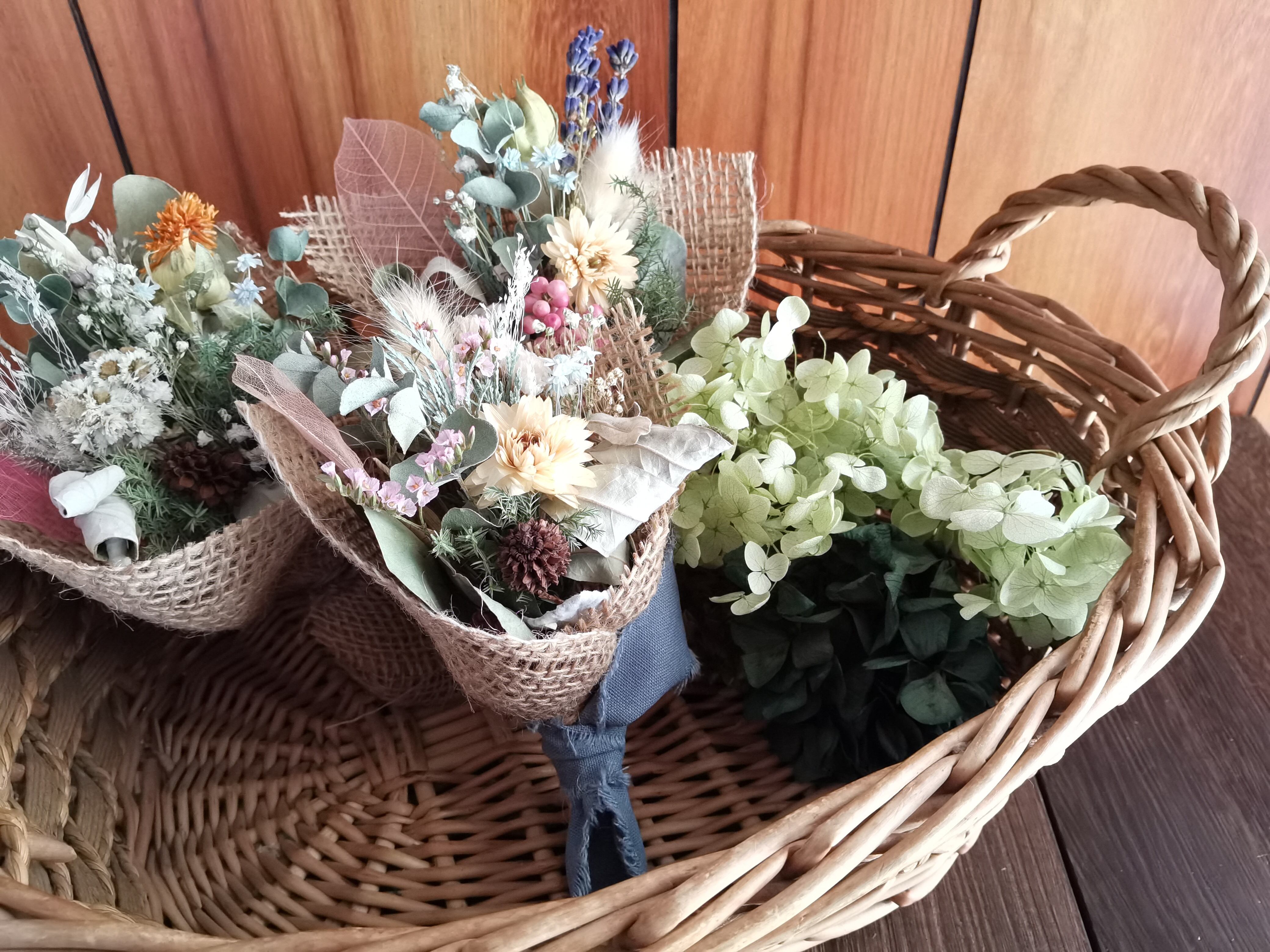 大きさを選べるドライフラワーのブーケです。